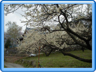 お寺の周囲には樹齢30年の桜が周囲に植えられています。写真左上にちょこっとだけ、本堂の屋根が見えるでしょう?
