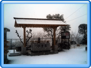 ご寄付いただいた水屋に雪が積もっています。ただただ竜頭からでる水音のみが境内に響いております。冬の静寂のひとときです。